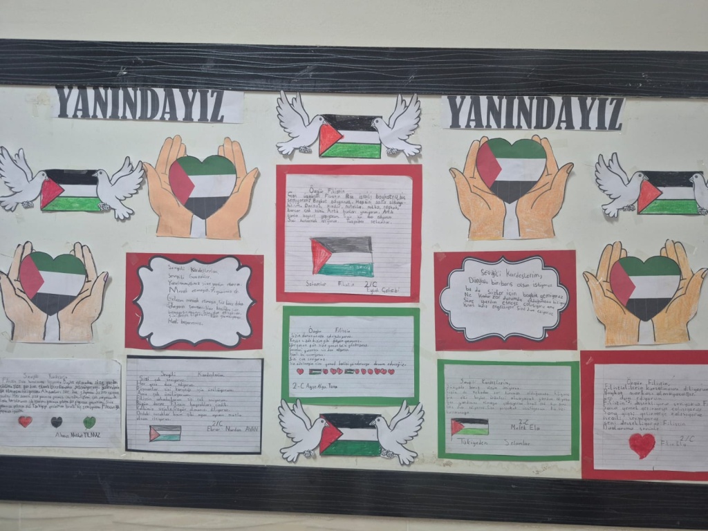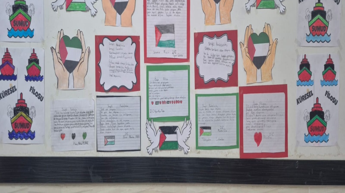 Bakanlığımız tarafından 81 ile gönderilen “Filistin farkındalık etkinlikleri” konulu yazıda, bölgede ve küresel kamuoyunda büyük hassasiyetle takip edilen Filistin meselesi ile Küresel Sumud Filosu gündeminin, eğitim camiasının ortak vicdanını güçlü biçimde temsil etme sorumluluğunu beraberinde getirdiği belirtildi. Bizlerde bu kapsamda okulumuzda düzenlediğimiz etkinliklerde "Türkiye Yüzyılı Maarif Modeli"nin "erdem-değer-eylem" yaklaşımı doğrultusunda, öğrencilerin eleştirel düşünme becerileri ve sorumluluk bilinci geliştirmelerini amaçladık. Evlatlarımızın demoratik duyarlılılıklarının ve insan hakları bilincinin artması konulu Filistin etkinliğimizi okulumuzda coşkuyla gerçekleştirdik.