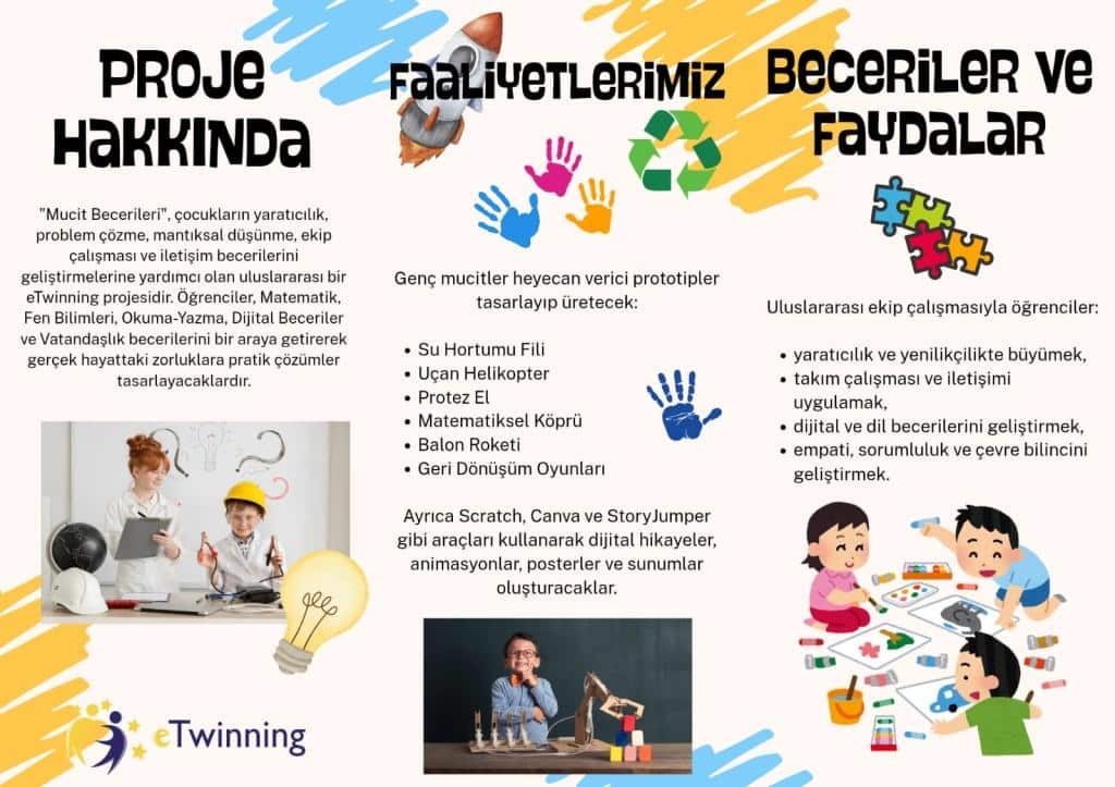 Projemiz eTwinning'in yaşam becerileri temasını destekleyerek öğrencilerimize problem çözme, iş birliği içinde çalışma, üretkenlik ve yaratıcılık becerileri kazandırmayı amaçlıyor.